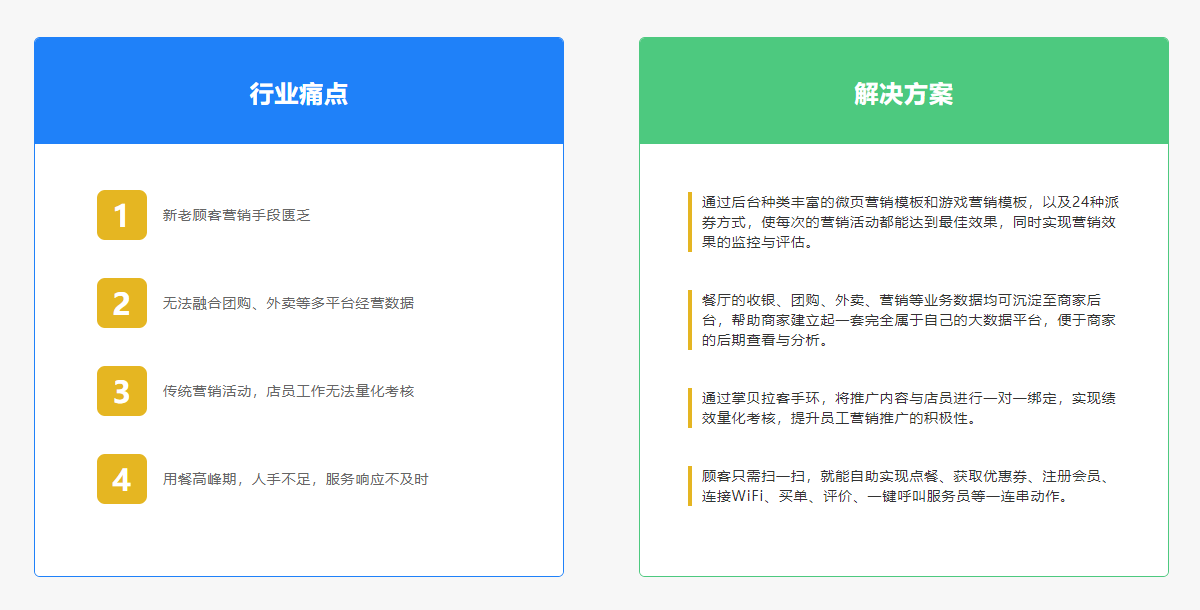 餐飲行業(yè)競爭越發(fā)激烈,互聯(lián)網(wǎng)對餐飲業(yè)的沖擊和改造也在不斷加強,時匆為餐飲商家提供一整套行業(yè)解決方案,幫助餐飲商家提升店內(nèi)服務(wù)效率,通過互聯(lián)網(wǎng)連接并轉(zhuǎn)化更多的消費者,從而實現(xiàn)老客回流、新客引流。時匆還能通過豐富的門店應(yīng)用幫助商戶收集顧客數(shù)據(jù),建立屬于商家自己的大數(shù)據(jù)平臺,實現(xiàn)數(shù)據(jù)化運營和智能營銷